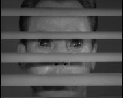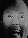 "Those rocks weren't here last winter!" Time out. First of all...didn't Dan say that nobody had been out here since 1900? Even more to the point, does Steve remember every pile of freakin' rocks in the desert? I'm willing to cut this movie some slack, but, c'mon! Isn't it a little early in the film for such lunacy? Ok, ok. Let's not lose the momentum. Steve and Dan grab their gear and head out to check out this Amazing New Pile of Rocks. A blast of trumpet fanfare and a tight shot of Dan's canteen on the rock screams to the viewer, "PLOT POINT". After struggling over rocks for awhile, and may I point out, they've walked far too long considering how close the pile of rocks must have been given their size in the binoculars, Steve and Dan reach a cave. "It's just been blasted out recently...that explains that pile of rocks," Steve remarks, once again confirming his super-human photographic memory of the local terrain. (By the way, give yourself OK, Steve and Dan head into the cave to check things out. Once again, considering that this cave is the source of radiation that can be detected by a hand-held Geiger counter 20 miles away, I would think that more protective gear would be required than just a pith helmet. Then again, I'm not a nuclear scientist. After a bit the Geiger counter because to go nuts. Steve and Dan go deeper into the caves. You know, aren't blasts of gamma radiation a bad thing? Aren't you supposed to go away from them? I wouldn't be surprised if these 2 nitwits were glowing in the dark after all this. More exciting Walking Through Caves footage ensues. Finally a glowing light appears in the darkness. "We're friends...c'mon out," Steve shouts, "We're coming in...we don't want any trouble, but we're armed...in case you are." At this point I would believe that Steve and Dan After a few more false scares and dead ends, the Geiger counter begins to go crazy yet again. (Geiger counters play a large role in this film, as you've probably noticed.) Out of one end of the tunnel appears a giant, floating brain with a pair of glowing eyes. You have now seen what is undoubtedly the best known "Brain" in all of B-Movie history...Gor! The Evil Brain from Outer Space! Steve responds, of course, by opening fire with his pistol..."We have to get past it somehow," he says. Why yes, I guess you do, don't you? This whole episode with the brain and what-not gives John Agar a golden opportunity to ham it up as he's 'taken over' by Gor. Meanwhile, Dan is zapped and crumples lifelessly to the cave floor. Cut to Sally's house. Chatting on the phone to her father, Sally mentions that she and "Jim" (Who?) are planning on driving out to M.M. to "surprise" Steve and Dan since she hasn't heard from them in a week. (A week?! Jumping-Jimminy cricket! Didn't anybody think about going out and checking on these guys?) As she hangs up the phone she notices that Steve is standing on the porch staring through the window. (An ominous horn blare reminds us that Steve isn't really 'Steve', if you get my drift.) A fairly saucy kissing session ensues, given that this was made in the 50's. "You know what we found up there...absolutely nothing," Steve tells Sally before planting another big wet kiss onto her mouth. "Wow!", Sally breathlessly exclaims after detaching her mouth, "You've never kissed me like that before." "I've never missed you so much before," Steve-Gor smirks. "Where's Dan?" Sally asks after noticing that Steve has returned alone. Steve-Gor plays it cool, "Oh...you know Dan, a playboy at heart...one week in the mountains and he has to go to Las Vegas to recuperate." (!) Sally notices that something is different with Steve...something she can't quite put her finger on. "There's something different about you," she says. "What do you mean...'different'? I'm still the same old lovable character I always was," Steve-Gor Steve-Gor suddenly lurches from the table and grabs his head in pain. After a moment or two, he recovers. "What happened up there?" Sally demands to know. "If you mean that pain...it was just a tooth kicking up," Steve-Gor says. (Well, at least giant space brains are crappy liars.) Steve-Gor puts the matter to rest by planting another wet kiss on Sally's mouth. "It makes my toes tingle," Sally coos. Alas, Steve-Gor gets a wee bit too excited and shoves Sally back onto a lounge chair where he proceeds to grope her, tears her shirt, and reveals her bra in the process. (I bet this scene was fantasy fodder for not a few teenage boys from this decade. I would love to hear from anybody who was around to actually see this movie in a theater.) Sally's dog, George, saves the day by attacking Steve-Gor, who is forced to break off this one-sided amorous encounter long enough to fight off the snapping canine. "You've been working too much, you've got to see a doctor," Sally pleads. "Don't expert me, Sally, I'm alright!" Steve shouts before storming off to his car and speeding Back at his lab, Steve sits in his chair and writhes in pain as Gor exits his body. (Due to budget constraints, you never really see the brain and an actor share the same shot. Well, at least not until the end of the film where...oh well, you'll see. When a shot does require both to be seen, the brain is simply super-imposed over the actor, as in the screen shot to the left. When you do finally see the massive, balloon-shaped, wire-suspended brain at the end of the film, you can understand the filmmaker's preference to use the overlay shots as much as possible...) After leaving Steve's body, for the moment, Gor introduces himself and gets right to the point, "I am Gor. I need your body as a dwelling place while I am here on your Earth." "Why me?" Steve understandably asks. "Because you are a recognized nuclear scientist." OK. Fair enough, but really, how the hell did Gor know who Steve was? Where Steve lived? Did Gor look his address up in the phone book? Why pick a two-bit scientist who lives in the middle of "I chose your body v