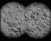 The Amazing Appearing Pith Helmet As Dan and Steve hang around on the patio, Sally prepares the burgers and serves lunch. Well, well...how cozy. Who just happens to show up but Sally's father, John. Steve explains that he and Dan are going to drive out to Mystery Mountain (oh brother) after lunch. "But why?" John asks. "A hot blast of gamma coming from Mystery Mountain," Steve answers, "Lucky it's intermitant...if it was constant, we'd all be fried." Yes, Steve, it's good that it's an occasional burst of gamma radiation so that you won't be "fried", but it's OK that your kids will be born with 3 eyes. That's a relief. As the guys shove hamburgers into their mouths, Dan mentions to Sally that they'll probably be gone 3 or 4 days. This really seems like an overly long time to be gone since he also just mentioned that the mountain is only 20 miles away. Maybe they're going to ride mules out to the site or something. Anyhoo, after lunch Dan and Steve drive out into the desert in their jeep. After driving as "far as they can" in the jeep (er, ok, whatever), they hop out of their ride and continue on foot: Steve grabs a rifle while Dan takes a canteen full of water and a Geiger counter. Now, I'm not an expert in desert survival, but I would think that a 4-day trip into the desert would require more than a single canteen of water between 2 men. Maybe they're going to suck rocks...didn't I read something about that somewhere? Forgive me, I digress. As Steve peers through a pair of binoculars, Dan sips his water and quickly spits it out because it's too warm. (Um, Dan, what were you expecting in the desert? Really, why is this guy stationed out here anyway? Oh yeah. So a giant space brain can zap him.) Disgusted and shocked at the unacceptable rise in temperature of his water, Dan abandons the canteen on a rock. (Not to beat a dead horse, but I don't think Dan is cut out for desert duty.) In a truly absurd bit, Steve spots a pile of rocks through the binos. "They weren't here last winter," he notes.